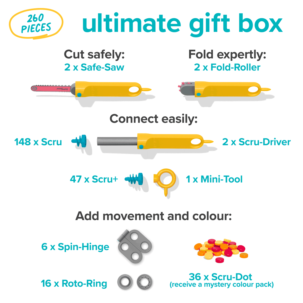 Additional packs of Makedo Scru connectors and individual tools are also available from our online store. -