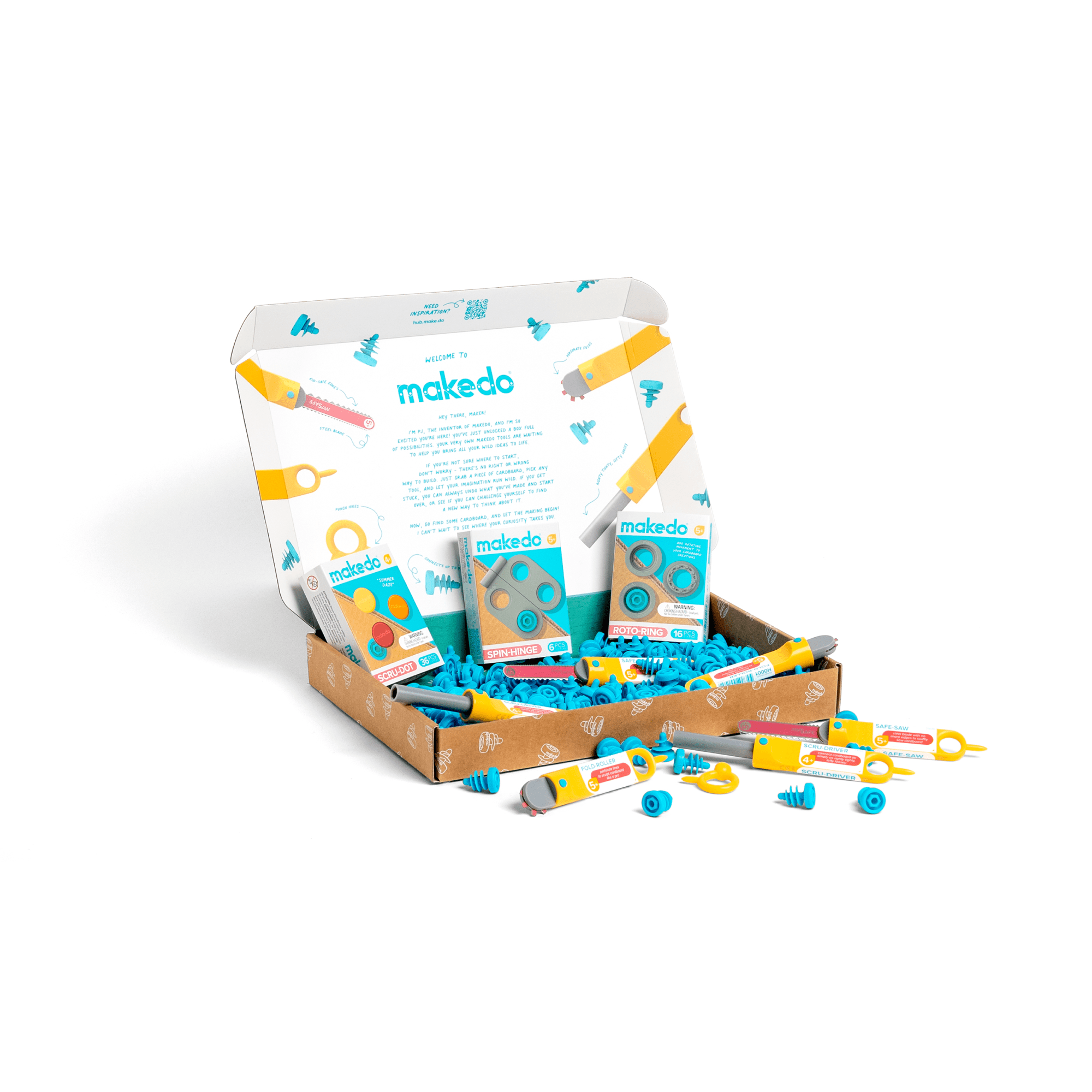 Filled with your Makedo favourites and packed in a custom gift box, it’s exciting, it’s fun, and it’s ready to gift to the makers in your world.